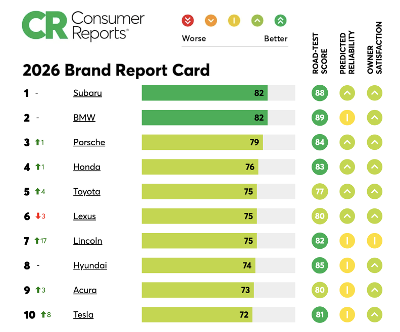 For the second consecutive year, Subaru has been named the #1 Overall Brand in the Consumer Reports 2026 Car Brand Rankings, outperforming 32 global automotive brands. This achievement reflects Subaru’s consistent strength across road-test performance, predicted reliability, owner satisfaction, and safety.
