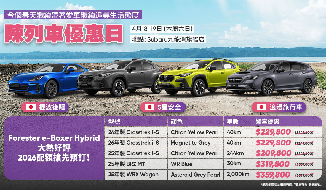 歡迎親臨陳列室,了解SUBARU車款的獨特之處。